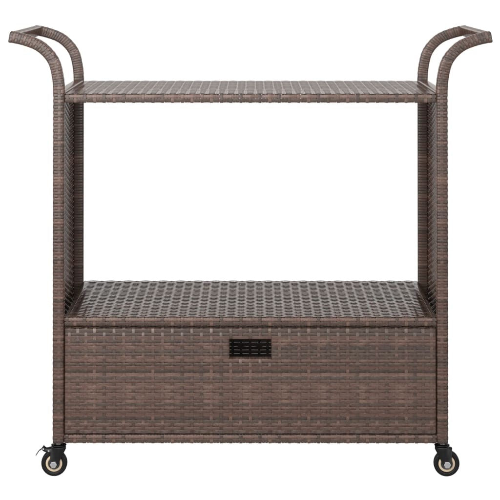 Bar Cart with Drawer Brown 39.4"x17.7"x38.2" Poly Rattan