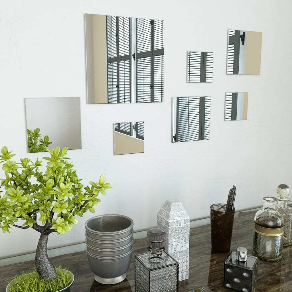 Wall Mirror Set of 7 Transparent Glass Small Decorative Inlays