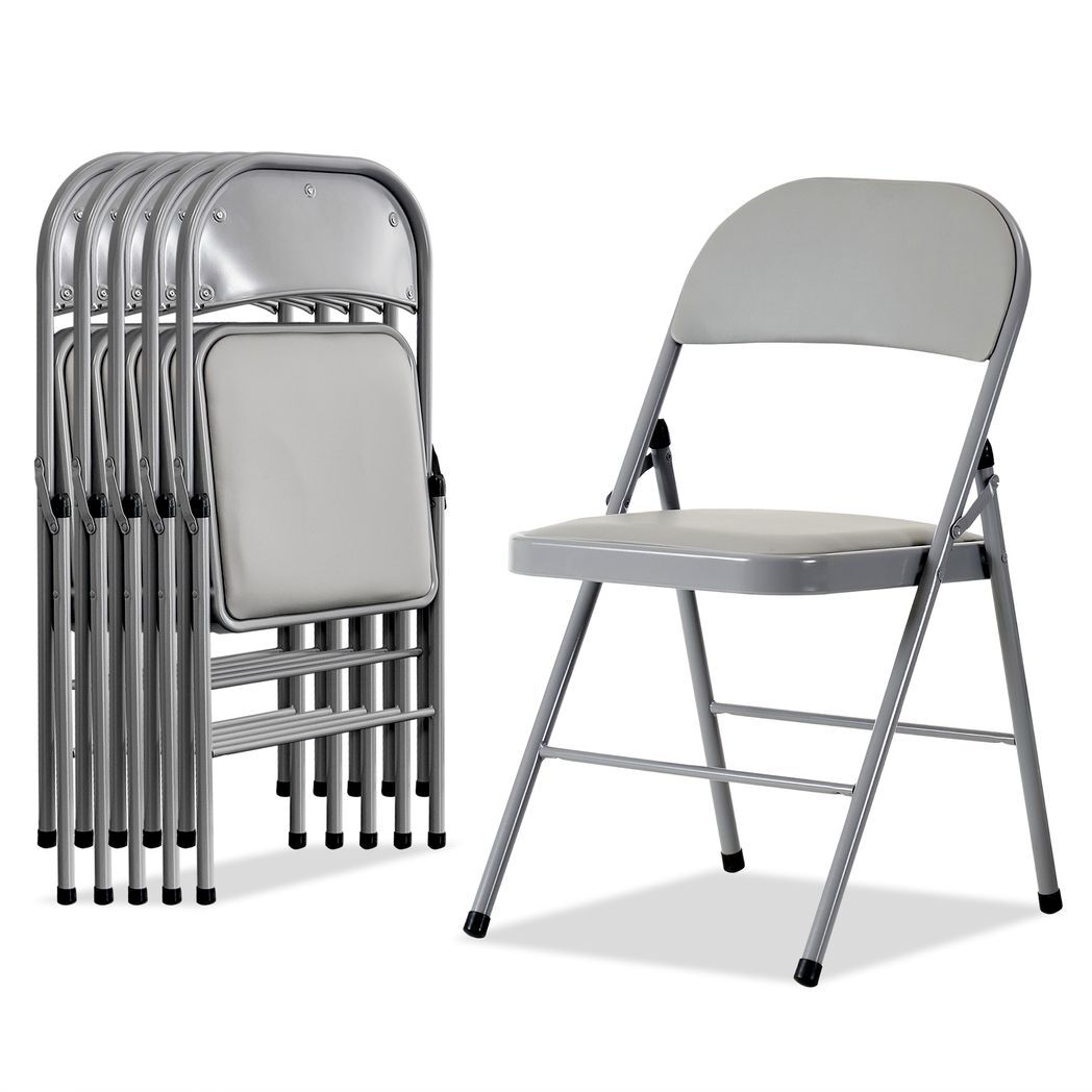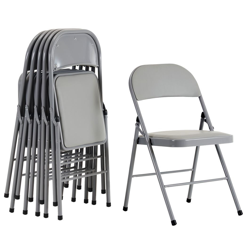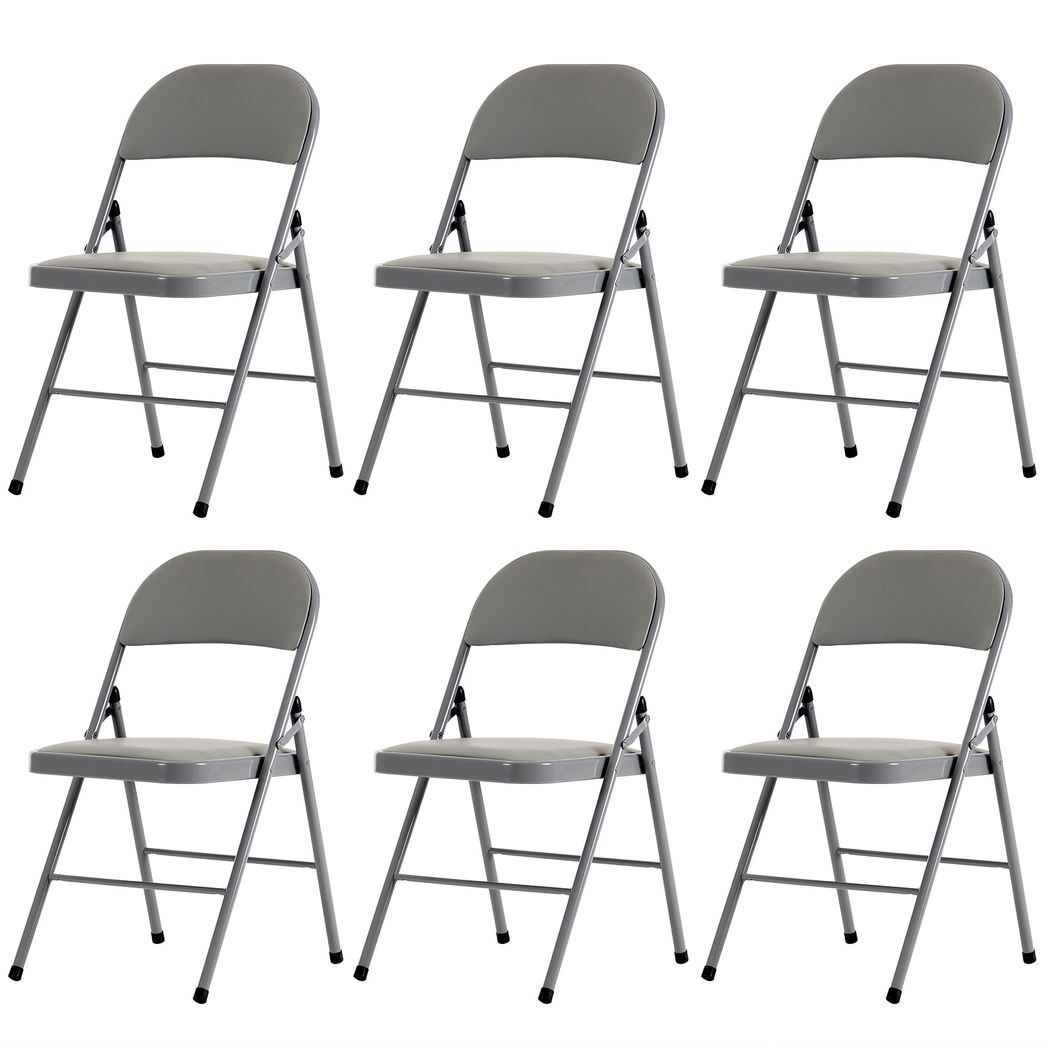 6pcs Elegant Foldable Iron & PVC Chairs for Convention & Exhibition Gray