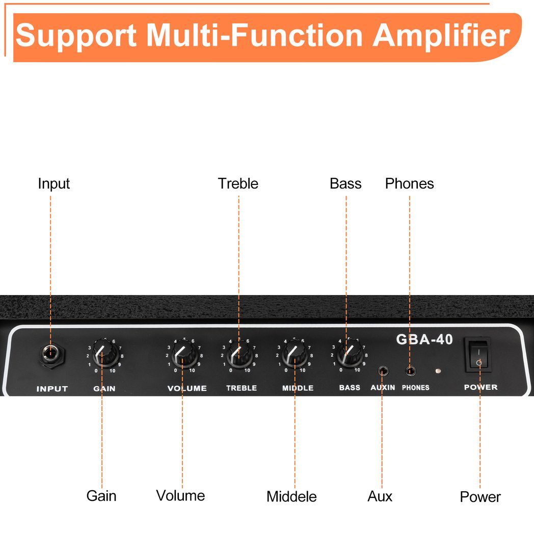 You can't be without a perfect bass amplifier if you want to enjoy your musical time. Our guitar amplifier will satisfy your desire with its wonderful sound effect. This bass amplifier is easy to carry. Plastic protection and rubber foot pads on its corners will prevent it from clash and scraping. Soud Creativity experiment with various controls and effects on the bass and amp, helping to expand your musicality. You can use it when you're playing bass in your room and it's especially suitable for beginners!