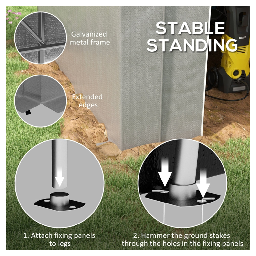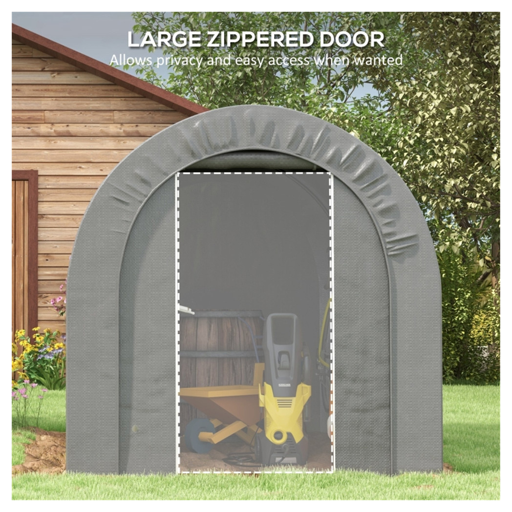 - Spacious tent storage shed for your bike, motorcycle, or garden tools